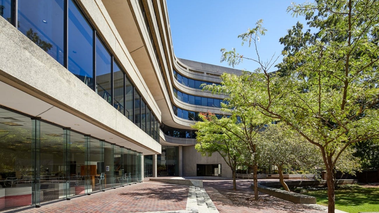 Because preserving the embodied carbon is key to decarbonizing the campus, EHDD developed a scheme—designed in accordance with the Framework for Design Excellence—that will reinvent the existing building, rather than starting anew. On the primary south- and west-facing façades, fixed solar shades above new double-pane low-E glazing will minimize heat gain and create less of a burden for electrified building systems—all of which will be powered by on- and off-site renewable energy. A new performative cool roof under a 125 kW PV array will further regulate the thermal resistance of the structure.